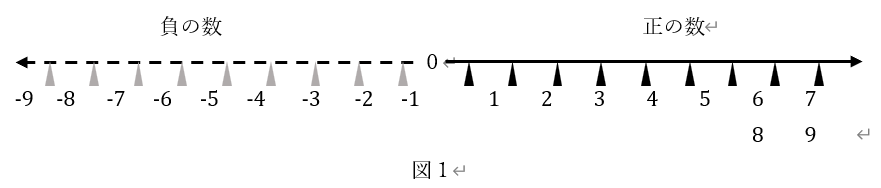 このとき、次の図にあるような数直線がゼロを基準に作られる。