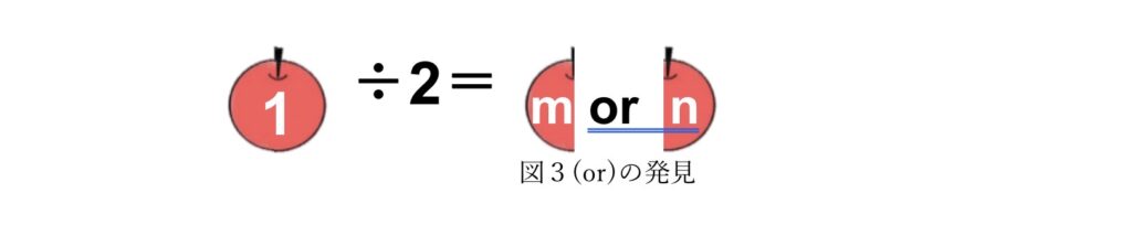 このとき、(or)がm(0.5)と、n(0.5)のどちらを折りたたみ隠すかを示す記号になる。これをMitsuyoshiによる分割後の引き算(÷)としての割り算による現象(or)の発見とする。